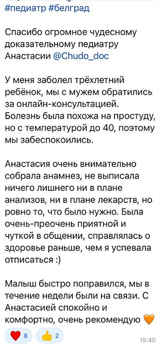 по любым вопросам здоровья и развития ребёнка с рождения до 18 лет